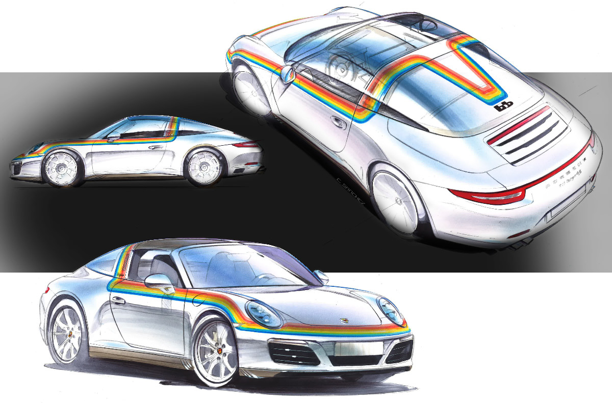 Der b+b Regenbogen-Porsche als erster Turbo Targa schaffte spontan den Sprung aufs Titelblatt